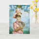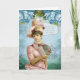 Une belle carte avec une femme victorienne avec un ventilateur dans un paysage.