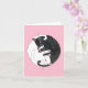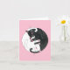 Carte rose avec deux chats endormis entrelacés en cercle. Un chat noir et un chat blanc. Attention : ceci est une carte vierge, donc si vous voulez du texte, vous devez l'écrire vous-même !
