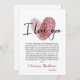 Express votre amour unique avec cette carte d'amour romantique personnalisée avec une belle empreinte de coeur et un message sincère. Parfait pour les anniversaires, la Saint-Valentin ou les moments spéciaux, cette carte vous permet de customiser le nom du récipiendaire et une signature personnelle en bas, ce qui en fait vraiment un unique. Le coeur d'empreinte rouge riche symbolise l'individualité de votre relation, tandis que la note d'amour touchante vous permet de partager vos émotions les plus profondes. Personnalisez votre message d'amour aujourd'hui pour un souvenir intemporel ! Nom personnalisable Signature personnalisée Parfait pour les anniversaires, la Saint-Valentin ou simplement parce que Design élégant avec un sentiment sincère