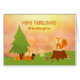 Une réunion mignonne des animaux de région boisée pour souhaiter à quelqu'un spécial un bon thanksgiving. Ajoutez un nom ou un rapport avec l'avant de carte pour une salutation personnalisée. La scène comporte des écureuils et un lapin se reposant sur l'herbe verte avec un arrière - plan orange et jaune.