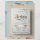 Le design "All-in-One Birthday Party Invitation" présente une disposition vibrante et festive avec des ballons colorés, des confettis et une illustration de gâteau d'anniversaire. Le haut présente un texte ludique invitant les invités à la fête, tandis que la partie inférieure offre un espace pour des détails essentiels comme la date, l'heure, le lieu et les informations RSVP. Avec un arrière - plan lumineux et joyeux dans les tons de dégradé, cette carte est parfaite pour créer de l'excitation et donner un ton joyeux pour la fête à venir. Idéal pour les fêtes d'enfants ou tout événement d'anniversaire amusant !