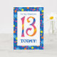Une carte d'anniversaire 13ème anniversaire lumineuse et colorée pour un Stepson, avec des numéros rayés et une bordure étoilée, d'un design numérique de Judy Adamson. Vous pouvez modifier le message intérieur si vous le souhaitez.