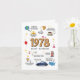 Prenez un voyage dans le temps jusqu'en 1978. La carte d'anniversaire parfaite pour maman, papa, mari ou femme Rendre leur anniversaire inoubliable avec une carte unique qui fait remonter l'horloge à 1978! Ce n'est pas seulement une carte de voeux, c'est une capsule temporelle remplie de souvenirs, de faits amusants et d'un hommage sincère à une année vraiment spéciale. Conçue avec un charme vintage, cette carte est remplie de petites bouts de 1978 : 🎶 Revenu moyen et population 🛒 Prix du gaz, de l’épicerie et des articles de tous les jours 💡 Inventions et événements mondiaux remarquables 👶 Les noms de bébés les plus populaires de l’année C’est un souvenir amusant et informatif qui saura susciter des sourires, des histoires et peut-être même quelques surprises. Que ce soit pour maman, papa, mari, femme, ou toute personne qui célèbre un anniversaire marquant, cette carte est une façon réfléchie de célébrer leur voyage et d'honorer le monde dans lequel ils sont nés. Plus qu’une simple carte d’anniversaire, il s’agit d’un cadeau significatif, d’un voyage dans la mémoire et d’un rappel de la distance qu’ils ont parcourue et de leur amour. À l'intérieur de la carte d'anniversaire : et beaucoup, beaucoup d'autres!