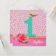 Carte d'anniversaire colorée de style bohème pour une petite fille de 1 an. La carte peut être personnalisée avec le nom de l'enfant ! Affiché sur un arrière - plan rose, il y a un géant 1 et une grande fleur + un mignon petit oiseau d'anniversaire avec une cravate arc. Eléments vintages de style collage. Comme dans les chambres d'enfants parisiennes !