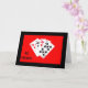 Quatre "10" d'un jeu de cartes, photographiés sur un fond rouge vif avec une bordure noire, sont le sujet de ma carte d'anniversaire "40 ans c'est important". Les quatre "10" totalisent 40 et c'est important !