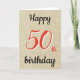 Carte d'anniversaire 50 ans écriture joyeux anniversaire rustique. Carte de vœux rustique pour un homme ou une femme célébrant son 50e anniversaire. Vous pouvez changer l'âge.