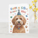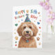 Cette jolie carte d'anniversaire de chien de 5e anniversaire comprend un chien Goldendoodle mignon dans un graphique casquette d'anniversaire. Sur le devant, vous pouvez personnaliser en ajoutant le nom de la personne qui reçoit cette carte d'anniversaire. Vous pouvez changer l'année si vous le souhaitez (par exemple, au lieu de "3ème" anniversaire, il peut dire "2ème" anniversaire). Le message amusant mais mignon à l'intérieur de cette carte dit "Espoir que votre anniversaire soit vraiment extraordinaire !". Profitez de cette carte d'anniversaire pour chiot Goldendoodle!