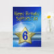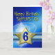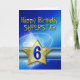 Une grande étoile dorée brillante dans laquelle vous pouvez mettre le nom du garçon d'anniversaire. L'arrière - plan est bleu avec de beaux tourbillons blancs.
