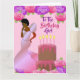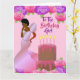 Cette belle et élégante carte d'anniversaire présente des roses roses et violets, et une afro-américaine en robe rose. Obtenez ces cartes d'anniversaire chic et mignonnes pour votre soeur et mettez un sourire sur son visage.