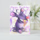 Cartes d'anniversaire amusantes avec une bonne souris violette Mange de la crème glacée - Painage MIGNED - ou Ajouter votre texte / nom