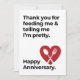 Le "Merci pour me nourrir et me dire que je suis jolie. Happy Anniversary" design est un cadeau d'anniversaire humoristique et charmant qui reflète la gratitude et l'amour. Il est parfait pour les anniversaires, les mariages, les jalons et les relations romantiques. Le design est vierge à l'intérieur pour un message personnel, ce qui en fait un cadeau réfléchi et mignon pour votre partenaire.
