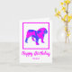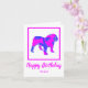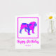 Silhouette anglaise Bulldog en rose chaud fou et bleu brillant abstrait motif moderne. Le message d'anniversaire à l'intérieur peut être changé à tout ce que vous voulez. Personnalisez avec le nom sous le sentiment Joyeux Anniversaire.