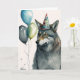Carte d'anniversaire Aquarelle Loup avec Ballons