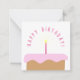Carte d'anniversaire rose et blanc mignonne avec un gâteau d'anniversaire illustré avec glaçage surmonté d'une bougie d'anniversaire éclairée, entouré d'un texte courbe "Joyeux anniversaire !" au-dessus. Les couleurs de tous les éléments sont personnalisables sur cette carte. Gardez un tas de ces cartes d'anniversaire génériques à inclure avec vos cadeaux d'anniversaire ou pour les urgences!