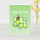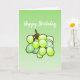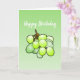 Raisins verts délicieux sur une carte d'anniversaire pliée.