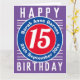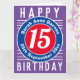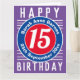 Couleurs vives et design audacieux. Carte anniversaire numérotée. 15 ans.