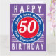 Couleurs vives et design audacieux. Carte anniversaire numérotée. 50 ans.