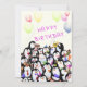 Cartes d'anniversaire joyeuses avec Dessin de fête de pingouins heureux - Jolie fête d'anniversaire de pingouin - ou Choisissez / Ajouter votre texte unique / Police / Couleur - Faites votre cadeau de carte d'anniversaire spécial - Redimensionnez et déplacez ou ajoutez des éléments / image avec outil de personnalisation! - Dessin et design par MIGNED. Vous pouvez également transférer mes designs à plus de 1000 produits Zazzle. Profitez - Soyez heureux :)