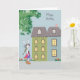 Carte d'anniversaire avec lapin bohème, bâtiments mignons qu'elle traverse, fleurs et arbres. Merci à Design Cuts et le hungryjpeg pour certains des éléments du design.