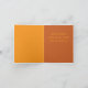 Cette carte présente des couleurs jaunes et orange et un ours en peluche portant un chapeau de fête se cachant derrière une citrouille sur le devant de la carte. Tous les mots sont personnalisés pour cette carte pour la rendre unique ou la garder identique.