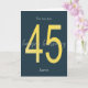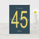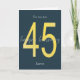 Une carte personnalisée bleu marine et or 45ème anniversaire pour lui. L'avant affiche le numéro 45 dans un dégradé d'or avec un joyeux message d'anniversaire. Vous pourrez facilement personnaliser l'avant avec son nom, le message d'anniversaire de la carte intérieure et l'arrière avec l'année. Cette carte personnalisée de 45ème anniversaire pour lui ferait un merveilleux souvenir.
