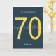 Carte marine personnalisée bleu et or 70ème anniversaire pour mari. Les caractéristiques avant du numéro 70 en or avec un joyeux message d'anniversaire. Vous pourrez facilement personnaliser l'avant avec son nom, le message d'anniversaire de la carte intérieure et l'arrière avec l'année. Cette carte personnalisée de la 70ème fera un merveilleux souvenir pour lui.