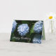 Cette carte d'anniversaire présente des fleurs d'hydrangée bleues en pleine floraison. Symboliquement, l'Hydrangea est associée à la vanité, se vante et vous remercie pour votre compréhension. Fleur traditionnelle du quatrième anniversaire.