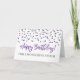 Carte d'anniversaire pour la soeur avec motif parties scintillant moderne en argent et violet. Veuillez noter que l'effet de parties scintillant n'est que photographique.