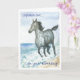 Une carte d'anniversaire pour les amateurs de poney ou de cheval avec un poney du Connemara, galopant sur la plage, d'une aquarelle de Judy Adamson. L'accueil intérieur est : "Ayez un bon !"