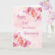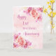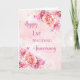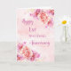 Bonne 1ère carte anniversaire mariage avec de belles fleurs d'aquarelle rose motif et verset sentimental.