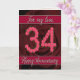 Carte d'anniversaire de 34 ans avec des roses et d