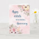 Joyeuse 60ème anniversaire de mariage carte avec de belles fleurs d'aquarelle rose motif et verset sentimental.