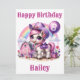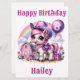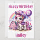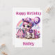 Un adorable poney de cowgirl fête son 8ème anniversaire avec un ballon violet au numéro 8 et un casquette de cowgirl violet sur une ferme. Personnalisez la carte avec le nom de votre enfant.