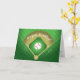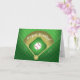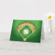 Carte d'anniversaire avec un terrain de baseball en losange et un design de sports de balle, avec texte personnalisable.