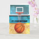 Carte d'anniversaire de basketball et conception de sports de terrain, avec texte personnalisable.