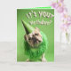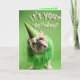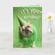mignon bulldog tout habillé dans un casquette de fête verte fait une grande carte d'anniversaire même si vous n'êtes pas propriétaire d'un bulldog