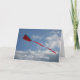 Carte d'anniversaire avec cerf-volant rouge volant dans un ciel bleu.