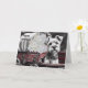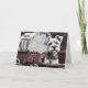 Un doux chien terrier dans un chariot rouge de style vintage rempli de fleurs. Envoyez cette carte d'anniversaire amusante et heureuse à vos amis.