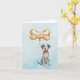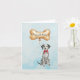Cette carte d'anniversaire comporte un portrait aquarelle d'un mignon chiot dalmate avec un arc rouge en ruban attaché autour du cou, tenant un ballon en forme d'os de chien d'or avec le texte "heureux anniversaire" écrit dessus.