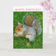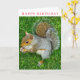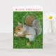 Une photo de fond d'un mignon écureuil imprimé sur une carte d'anniversaire laissée vide à l'intérieur pour votre propre message personnel.
