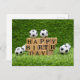 Carte d'anniversaire de football avec boules sur herbe verte pour joueur et ventilateur de football Carte postale. Avec un design impressionnant et un sentiment simple, cette carte est une façon mémorable de souhaiter un moment de bonheur à l'un de vos favoris.