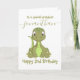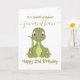 Cute Green Dinosaur 2e anniversaire doux bébé dinosaure carte bébé personnalisée pour un petit garçon. Cliquez sur le bouton "Customisez-le !" pour modifier la taille du texte, la couleur du texte, le style de police et plus encore !