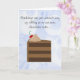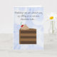 Un gâteau de chocolat triple de couche avec le givrage de fondant de chocolat et une cerise sur le dessus sur un rétro arrière - plan bleu. Une énonciation drôle au sujet de gâteau de chocolat est également décrite sur cette carte.