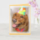 Golden retriever avec un casquette de fête d'anniversaire dessus.