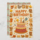 Ce joyeux design de carte d'anniversaire comprend un gâteau coloré à deux niveaux surmonté d'une bougie, d'une baguette étoilée et d'un casquette de fête, entouré d'adorables animaux de style papier coupés, dont des renards, des ours, des chiens, des chats, des oiseaux et plus encore. Confettis, ballons et détails gais remplissent l'arrière - plan, créant une scène festive et chaleureuse. Parfait pour les enfants ou les amoureux des animaux, cette carte ludique ajoute du charme à toute célébration d'anniversaire.