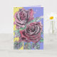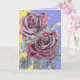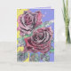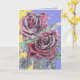 Carte d'anniversaire violet à l'aquarelle rouge Fleur de couleur rose. Conçu à partir de mon aquarelle originale et photo de jardin de mon propre jardin.