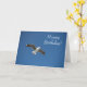 Mouette en vol dans un beau ciel bleu allant vers le haut vers le libellé "Joyeux Anniversaire", symbolisant la tendance à la hausse de la vie.