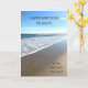 Cette carte d'anniversaire de plage présente une photo d'une belle plage à l'avant. Les mots "Joyeux anniversaire" apparaissent en haut et vous pouvez le personnaliser avec le nom du destinataire de l'anniversaire. Au fond de la plage se trouvent les mots "As You Walk with the Lord". A l'intérieur, vous trouverez la même scène de plage avec des couleurs défraîchies que la toile de fond pour un beau message d'anniversaire. Copyright Kathy Henis