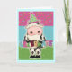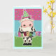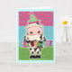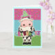 Une jolie vache dans un casquette de fête et texte qui dit "Célébrez" sur la carte de voeux de fête de la vache sainte Célébrez l'anniversaire!
