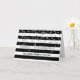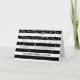 Carte de voeux d'anniversaire de l'employé ou du personnel en rayures modernes noir et blanc et motif de confetti argent.